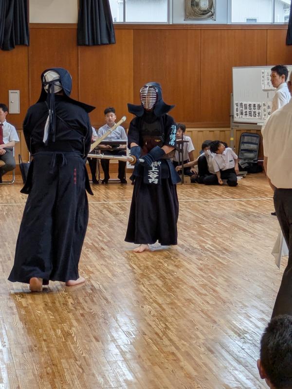 6月14日・15日、小松市武道館にて加賀地区剣道大会が行われました。男子は予選リーグを勝ち上がり、決勝トーナメント1回戦で敗退しました。女子は予選リーグを勝ち上がることはできませんでしたが、最後まであきらめずに粘り強く闘うことができました。男女ともに団体戦で県大会に出場します。