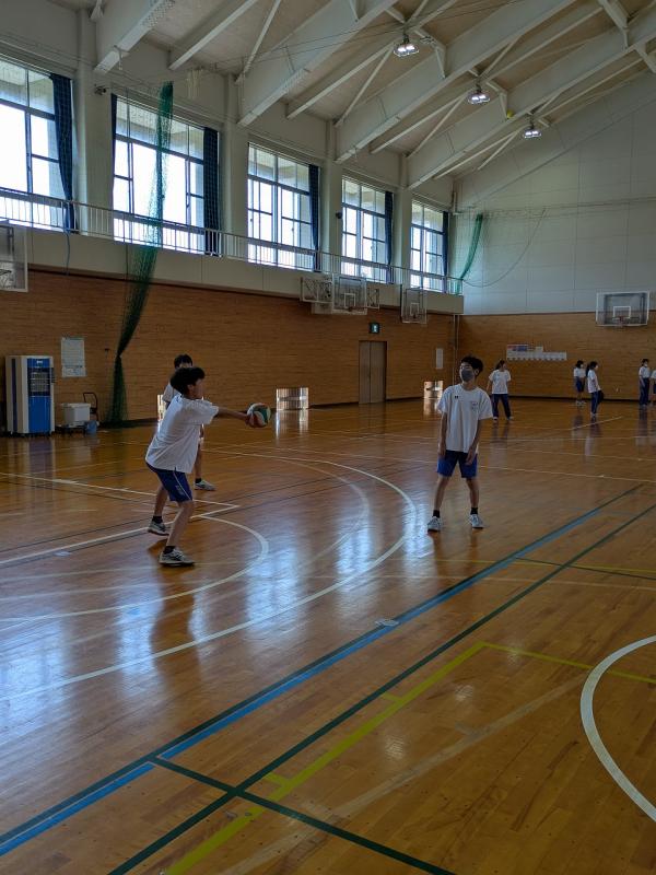 昨日は少し気温が下がりましたが、今日(7月16日)は暑さが戻ってきました。2年5組は体育館でバレーボールを行いました。現在、バレーボールネーションズリーグがテレビで放送されており、世界の迫力あるプレーを見ることができます。バレーボールの魅力は「レシーブ・トス・アタック」の3段攻撃です。それを何とか成功させようと、仲間と協力して楽しそうにプレーしていました。