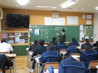 3年生の英語ではグループごとに英語ディベートに挑戦していました。論題「日本は住むのに良い国である」をテーマに時間配分を決めながら、難しい活動に挑んでいました。しかし、さすがは3年生、意欲的に取り組んでいました。