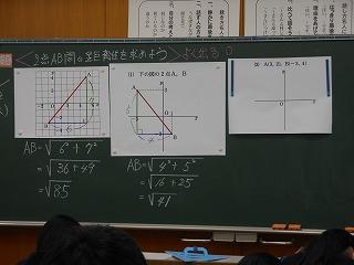 3年生の数学は三平方の定理です。通称、ピタゴラスの定理、a2+b2=c2に基づいて、様々な問題にチャレンジしています。