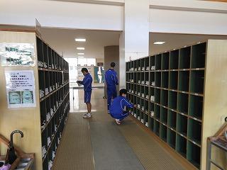 〇生徒玄関下足箱 全学年の下足箱の拭き掃除をしてくれました。普段は掃除をしない下足箱の上もピカピカです。