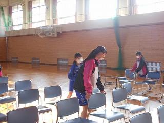 3年生は、明日11日(金)に行う卒業式の練習と予行に臨みます。今年度も3年生のみの卒業式となります。今日は部活動後にバドミントン部の生徒たちが卒業式練習の準備をしてくれました。