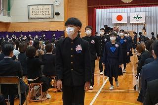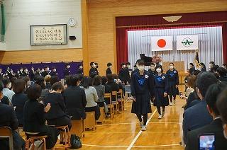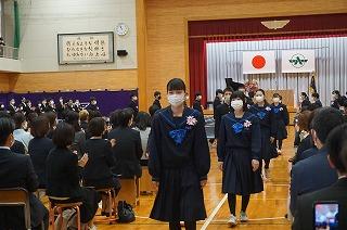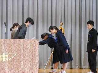 今日は1・2年生は授業、3年生のみ卒業式練習と予行を行いました。在校生として参加する2年生2人も予行に臨みました。明日は第23回卒業証書授与式です。