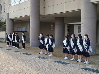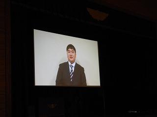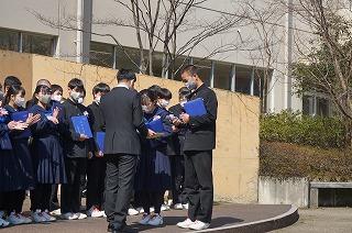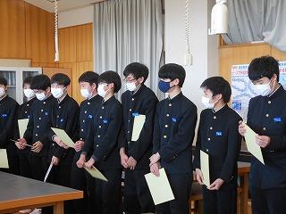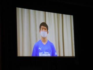 3年生の3年間の行事写真と思い出の先生からのメッセージに続いて、後輩からの感謝の言葉が放映されました。感謝の言葉に登場した2年生の部長たちが勢ぞろいしました。