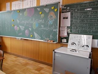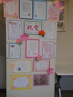 1年生に続いて、2年生のお祝いメッセージも図書室前に掲示されました。今日から臨時休校に入る3年生は昨日のお昼や休み時間に目を通していました。
