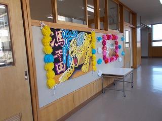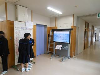 2月に行ったリモート版新入生入学説明会に対するメッセージが条南小学校の6年生からも届きました。校区3小学校の6クラスのメッセージが3F教室棟に2ヶ所に分けて掲示されています。