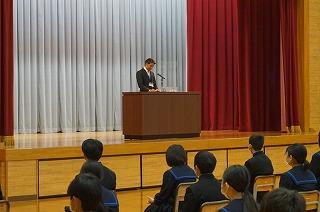 本日4限に修了式を行いました。永井校長先生、茶谷先生、岡本先生のお話を聞きながら、今年1年間を振り返りました。明日から春休み。今年度の終わりとともに次年度への準備が始まります。2年生は次年度、新しい学校の顔として下級生を引っ張り、1年生は先輩として後輩の手本となれるよう努めてほしいと思います。