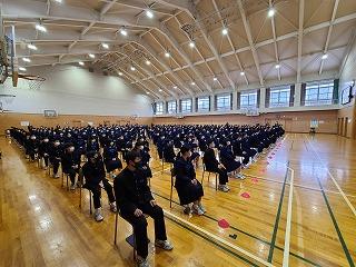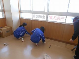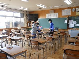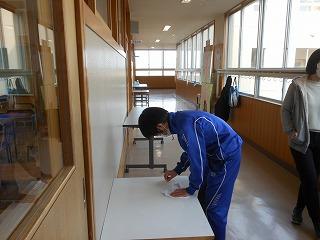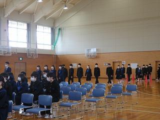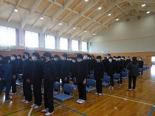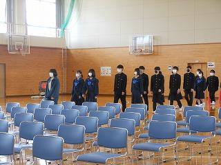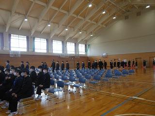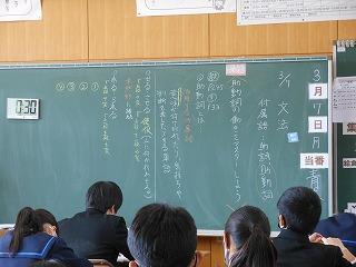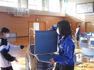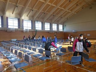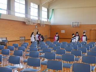 3年生は、明日11日(金)に行う卒業式の練習と予行に臨みます。今年度も3年生のみの卒業式となります。今日は部活動後にバドミントン部の生徒たちが卒業式練習の準備をしてくれました。