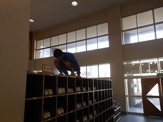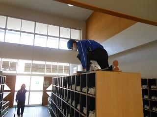 〇生徒玄関下足箱 全学年の下足箱の拭き掃除をしてくれました。普段は掃除をしない下足箱の上もピカピカです。