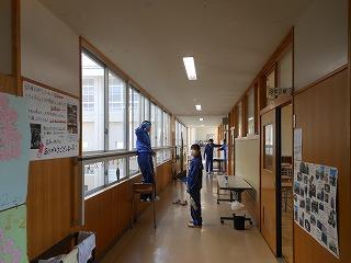 今年度はPTAの奉仕作業に生徒が参加できなかったため、2~3階の窓掃除ができていませんでした。