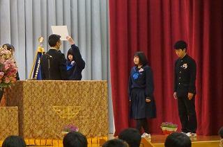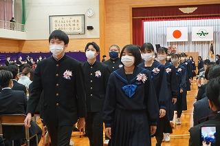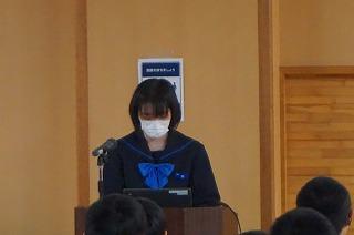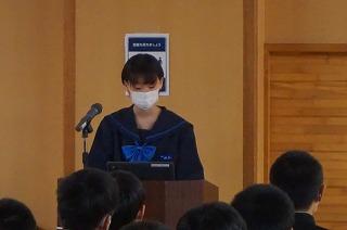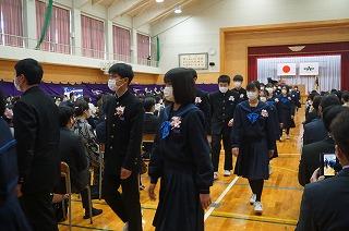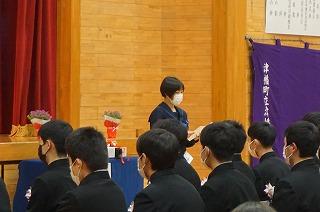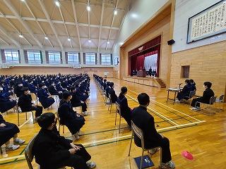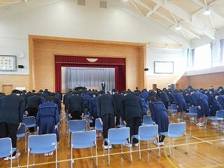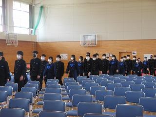 今日は1・2年生は授業、3年生のみ卒業式練習と予行を行いました。在校生として参加する2年生2人も予行に臨みました。明日は第23回卒業証書授与式です。