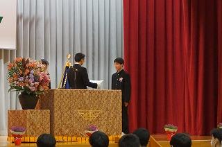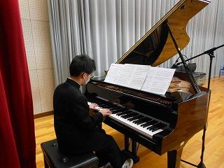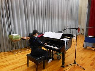 校歌の伴奏は2年生の櫻井章翔くんです。
