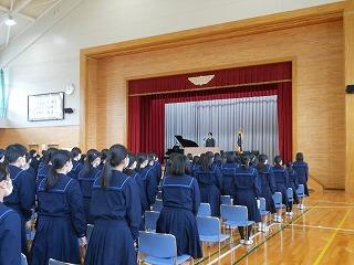 卒業の歌 伴奏は卒業生の細川茉都さんです。
