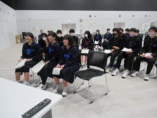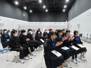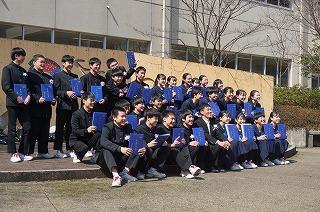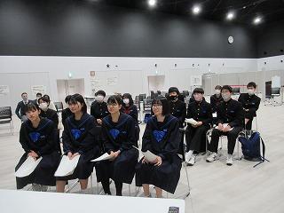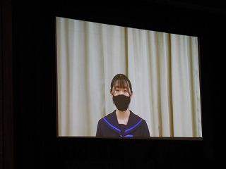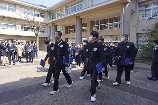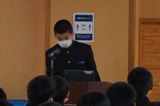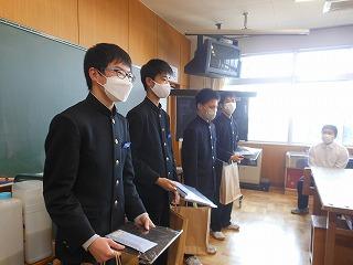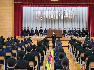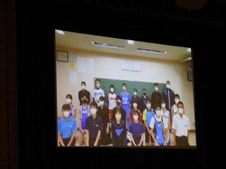 3年生の3年間の行事写真と思い出の先生からのメッセージに続いて、後輩からの感謝の言葉が放映されました。感謝の言葉に登場した2年生の部長たちが勢ぞろいしました。