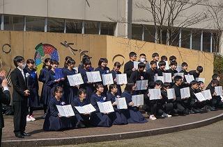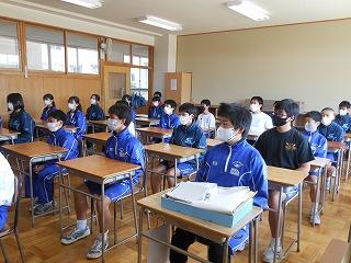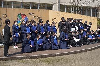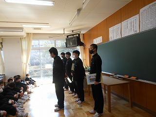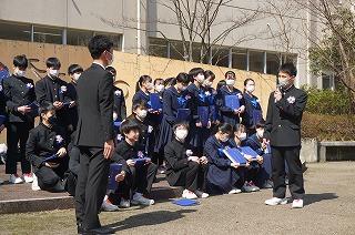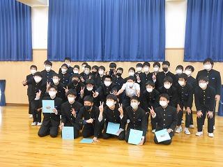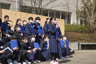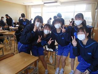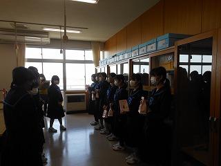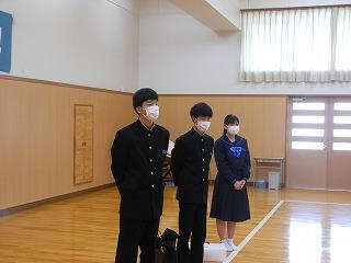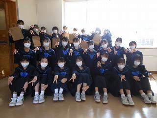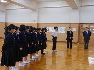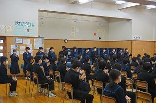 今日の給食後は昼休みを長めにとり、部活動ごとのお別れ会を行いました。1・2年生は明日が休校日ですので、今日で先輩方ともお別れです。メッセージや記念品を渡し、先輩からの一言を聞いたり、記念写真を撮ったりしました。