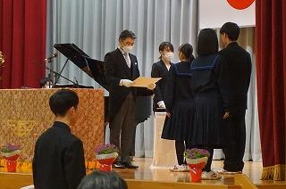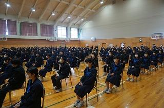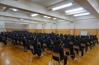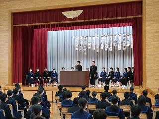 本日4限に修了式を行いました。永井校長先生、茶谷先生、岡本先生のお話を聞きながら、今年1年間を振り返りました。明日から春休み。今年度の終わりとともに次年度への準備が始まります。2年生は次年度、新しい学校の顔として下級生を引っ張り、1年生は先輩として後輩の手本となれるよう努めてほしいと思います。