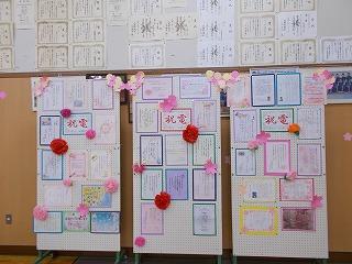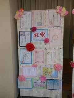 2月に行ったリモート版新入生入学説明会に対するメッセージが条南小学校の6年生からも届きました。校区3小学校の6クラスのメッセージが3F教室棟に2ヶ所に分けて掲示されています。