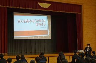 1・2年学年プロゴラム委員会が作成した映像を体育館で見ました。
