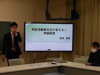 春休みの学校では、先生方も研修で学んでいます。新年度の学級開きに向けて、20年近いキャリアの先生方が自分の経験をもとに話をし、意見交換の場を持ちました。