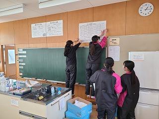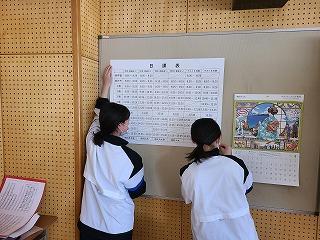 今週末の「令和4年度」のスタートに向けて、教室掲示もリニューアル。昨日午前に女子バスケットボール部が、午後はバドミントン部の皆さんが練習の合間を使って、協力してくれました。ありがとうございました。