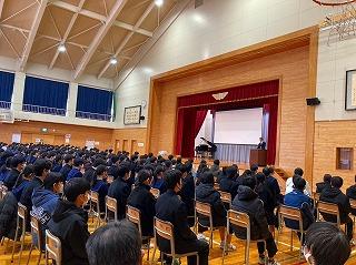 今年度最後の全校集会でしたが、聞き方も非常によく、先生方のお話も時折生徒同士の話し合いの時間をとるなどテンポもよく、とても引き締まった集会になりました。どの先生からも新年度に向けてのエールが送られました。今年度の締めくくりをしっかりして、新年度に備えましょう。