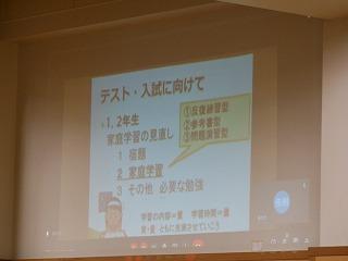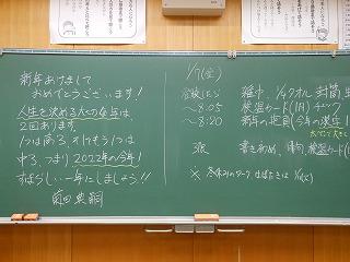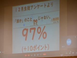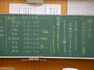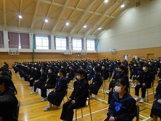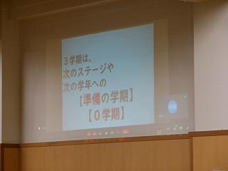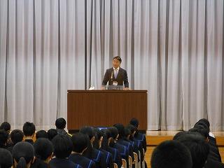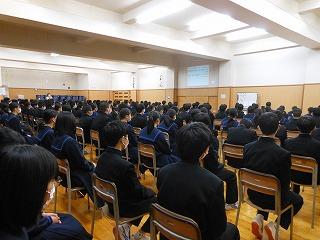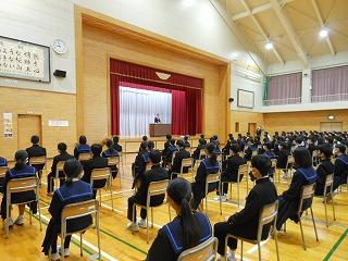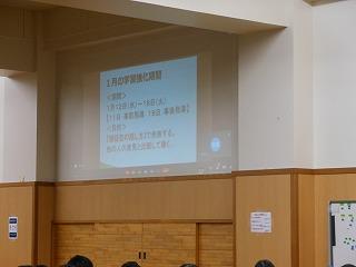 生活面では家庭での時間の過ごし方(三点固定)の大切さについて、学習面では家庭学習の意義について、12月の生徒アンケートの結果をもとに、新年にあたって見直していこうと呼びかけされました。
