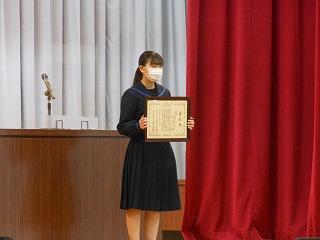 昨日午前9時30分から津幡町文化会館シグナスにおいて、令和4年津幡町消防関係表彰式が行われ、防火標語入選表彰において、本校3年生が優秀賞を受賞し、表彰されました。おめでとうございます。