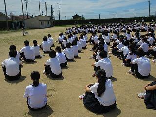 昨日も昼からの突然の雷雨で、不安定な天気でした。以前のホームページでもお知らせしましたが、雨の日の部活動は場所が限られており、窮屈な状態となっていますが、素敵な光景がみられました。