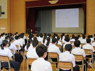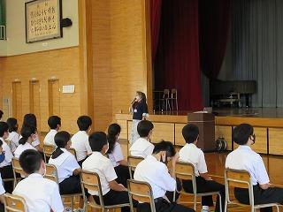 夏休みまであと6日。給食時の校内放送で、夏休みを迎えるにあたって、非行・犯罪被害の防止と交通安全の啓発を図っています。津幡警察署からの依頼を受けて、生徒指導担当の茶谷先生が呼びかけを行っています。以下の計画で進めていますので、ご家庭でもどんな内容であったか、話題にしていただけたらと思います。
