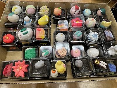 2年生は、樹脂粘土やレジンを使って、和菓子のサンプルを作りました。