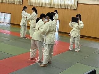 グループで動画を撮り合い、どうすれば効果的に技をかけられるかを話し合っていました。