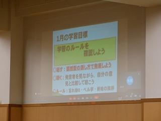 生活面では家庭での時間の過ごし方(三点固定)の大切さについて、学習面では家庭学習の意義について、12月の生徒アンケートの結果をもとに、新年にあたって見直していこうと呼びかけされました。