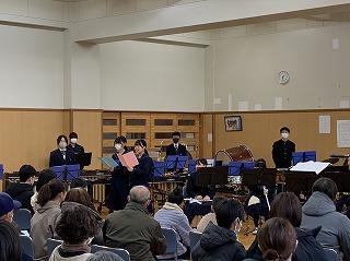 10日(土)13:30より、本校卓球場にて、吹奏楽部による震災お見舞いコンサートが開かれました。