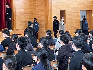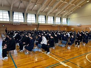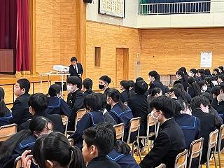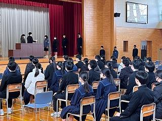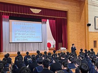 今年度最後の全校集会でしたが、聞き方も非常によく、先生方のお話も時折生徒同士の話し合いの時間をとるなどテンポもよく、とても引き締まった集会になりました。どの先生からも新年度に向けてのエールが送られました。今年度の締めくくりをしっかりして、新年度に備えましょう。