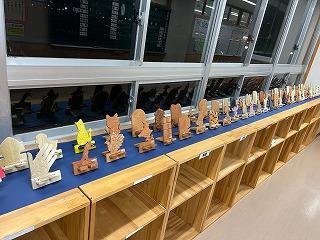 でき上がったスタンドから、職員室前に展示されています。