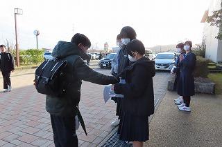朝は学校玄関前で活動を行いました。