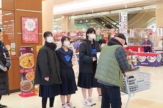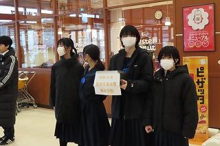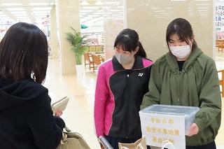 生徒たちは大きな声で募金を呼びかけ、アルプラザの職員の方からも元気の良さを褒められ、買い物客のみなさんにもたくさんの募金をいただきました。