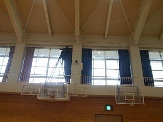 今年度の3年生の卒業記念品として、体育館2Fのカーテンをいただきました。平成11年の開校以来23年が経ち、カーテンもかなり傷んでいましたが、土曜日の夕すずみコンサートに合わせて、本校のスクールカラーである青色の立派なカーテンに変わりました。3年生の皆さん、ありがとうございます。
