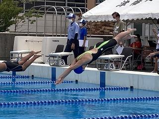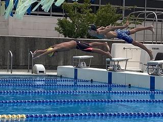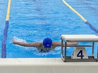 昨日、河北郡市中学校新人体育大会の先陣を切って、水泳競技が津幡中学校プールで開催されました。本校からも2名の選手が出場しました。