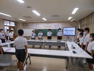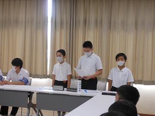 今日はテスト後に、相撲部・ボート部の代表生徒が津幡町役場を訪問し、矢田富郎町長に全国大会の結果を報告するとともに、これまでの支援に対するお礼の言葉を述べました。
