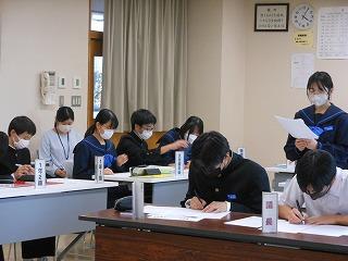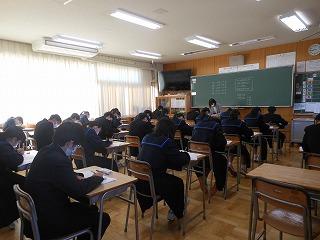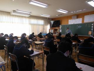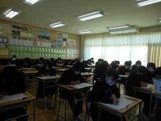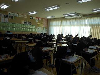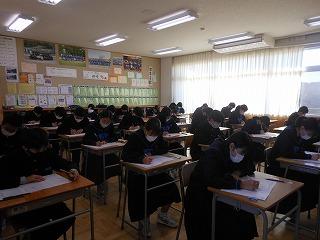 今日は2学期期末テスト。午前3教科、午後2教科でテストを行いました。2学期の学習内容のまとめとあって、どの生徒も真剣に問題に向かっていました。