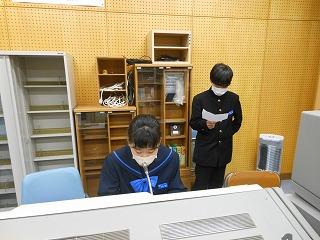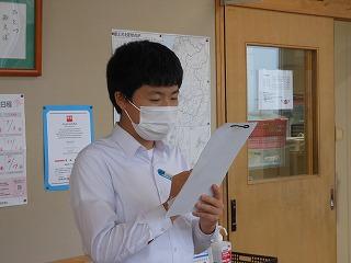 毎週火曜日の給食時は生徒会放送です。今日は大岩くんが昨日の生徒議会の意見交換で話題にあがったことを、米谷くんが生徒のお悩み相談室について、最後に牧野田さんが赤い羽根共同募金の呼びかけをしてくれました。来週から赤い羽根共同募金が始まります。募金は津幡町社会福祉協議会にお渡しする予定です。ご協力をお願いします。