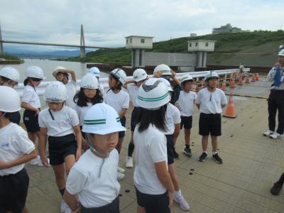 次に、河北潟の排水機の見学をし、河北潟の生き物とふれあいました。