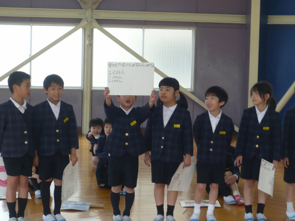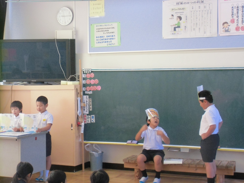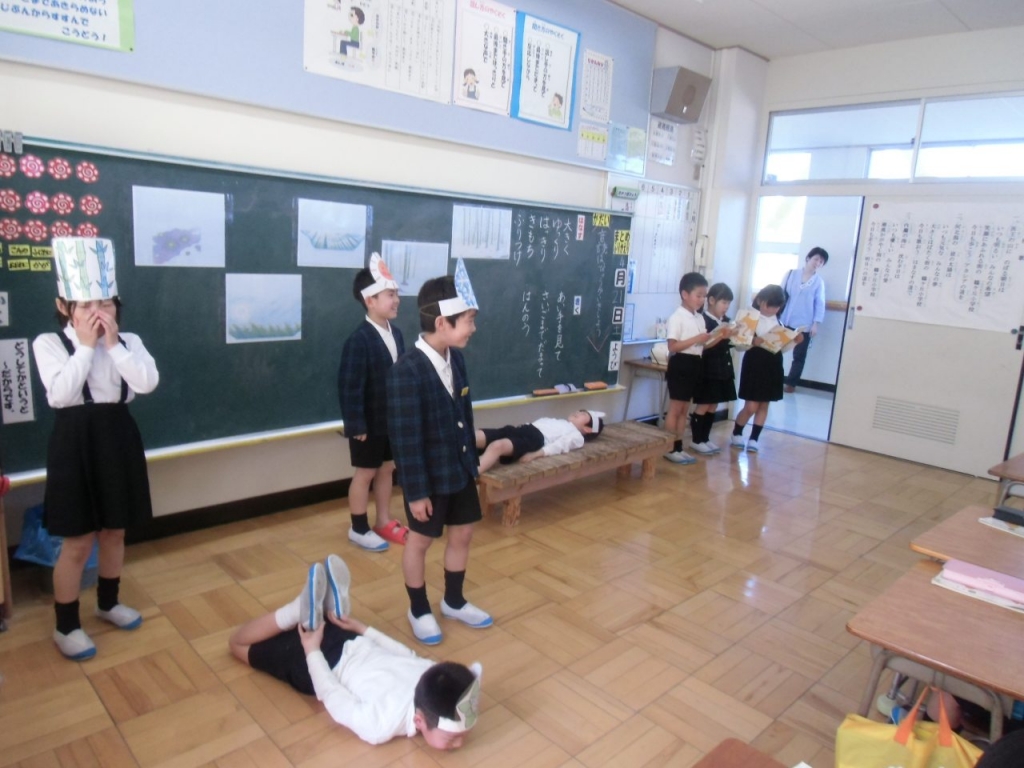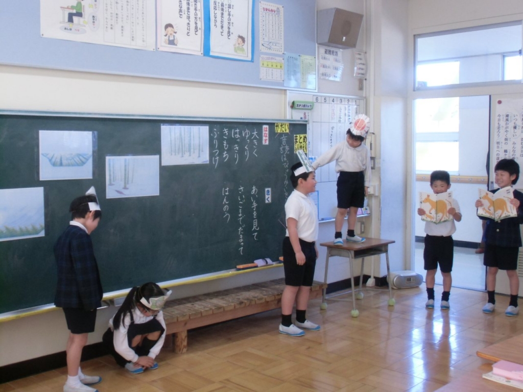 4月21日(土)今年はじめての授業参観でした。国語の「ふきのとう」の音読発表会のしました。こともたちは、グループにわかれて、協力しながら役割分担し、ふりつけも考えて音読しました。