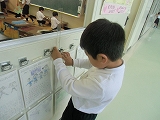 6月は、算数の学習で長さを勉強し、はじめて30㎝ものさしを使いました。はじめは、直線をひくのもなかなか難しい様子でしたが、楽しそうに教室や学校内にあるいろいろなものの長さをはかっていました。
