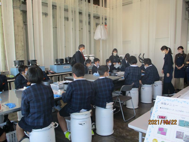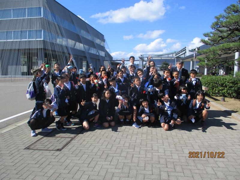 天気にも恵まれ、楽しく社会見学することができました。小松マテーレでは、染色体験を楽しんだり、繊維工場の広さに圧倒されたりしました。アップサイクルというSDGsの取り組みも学んできました。能美市防災センターでは、様々な体験(消火器・強風・火事のけむり・地震)や災害についての3Dビデオ視聴で、改めて災害の怖さや備えの必要性を感じることができました。