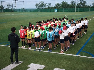 はじめて見るサッカー場は子供たちにとってはかなり広く感じられたようで、蹴ったボールがあまり飛んだ気がしないようでした。そのうち、徐々にピッチの感覚に慣れてきました。動きはいつも以上にクイックで激しく、長いパスも出るようになってきました。本番が楽しみです。(*´з`)
