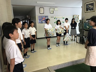 環境委員の児童たちが鶴ケ丘小学校を代表して渡してくれました。