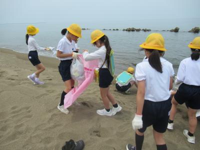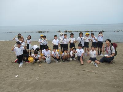 帰りに海岸により、ごみを拾ったり、貝殻を集めたりしました。