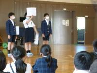 後半は、児童集会です。今回は、運営委員会の児童と4年生児童が発表をしました。